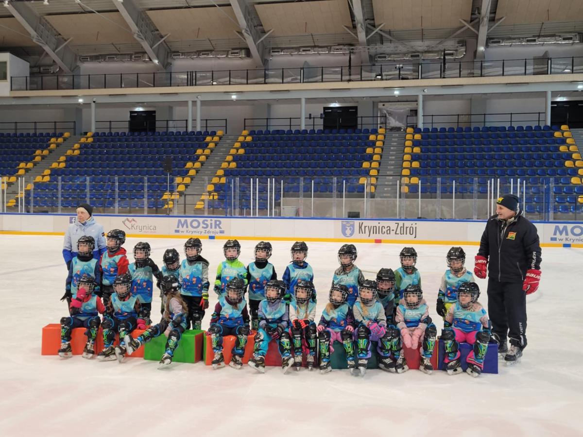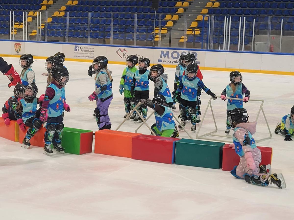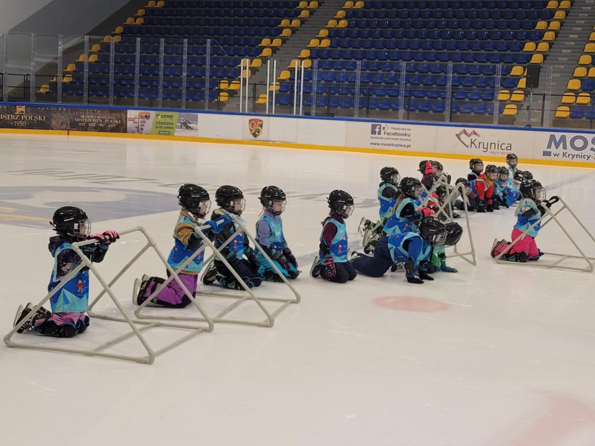 Z każdym treningiem dzieci czują się coraz pewniej na lodzie — śmiechu, radości i energii nie brakuje!