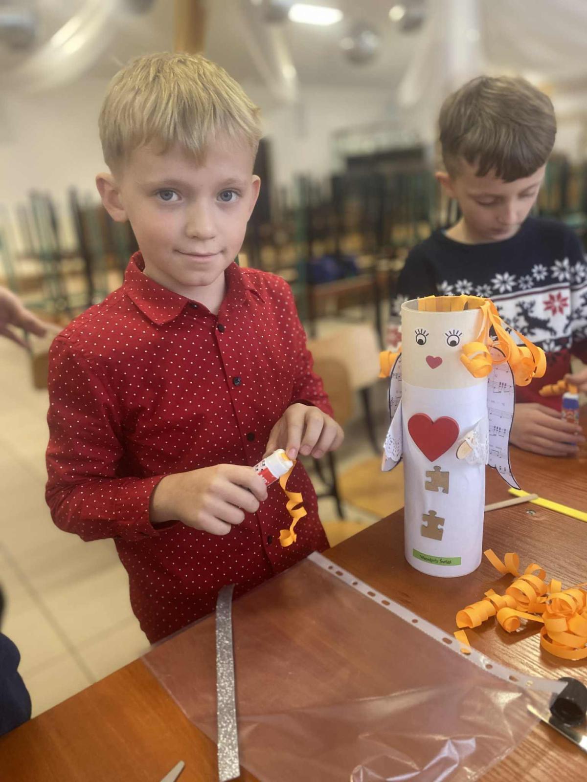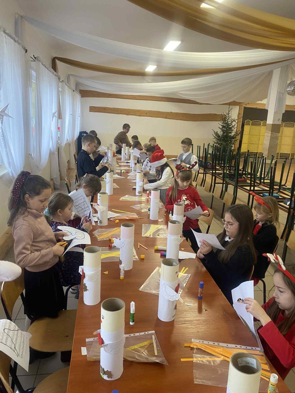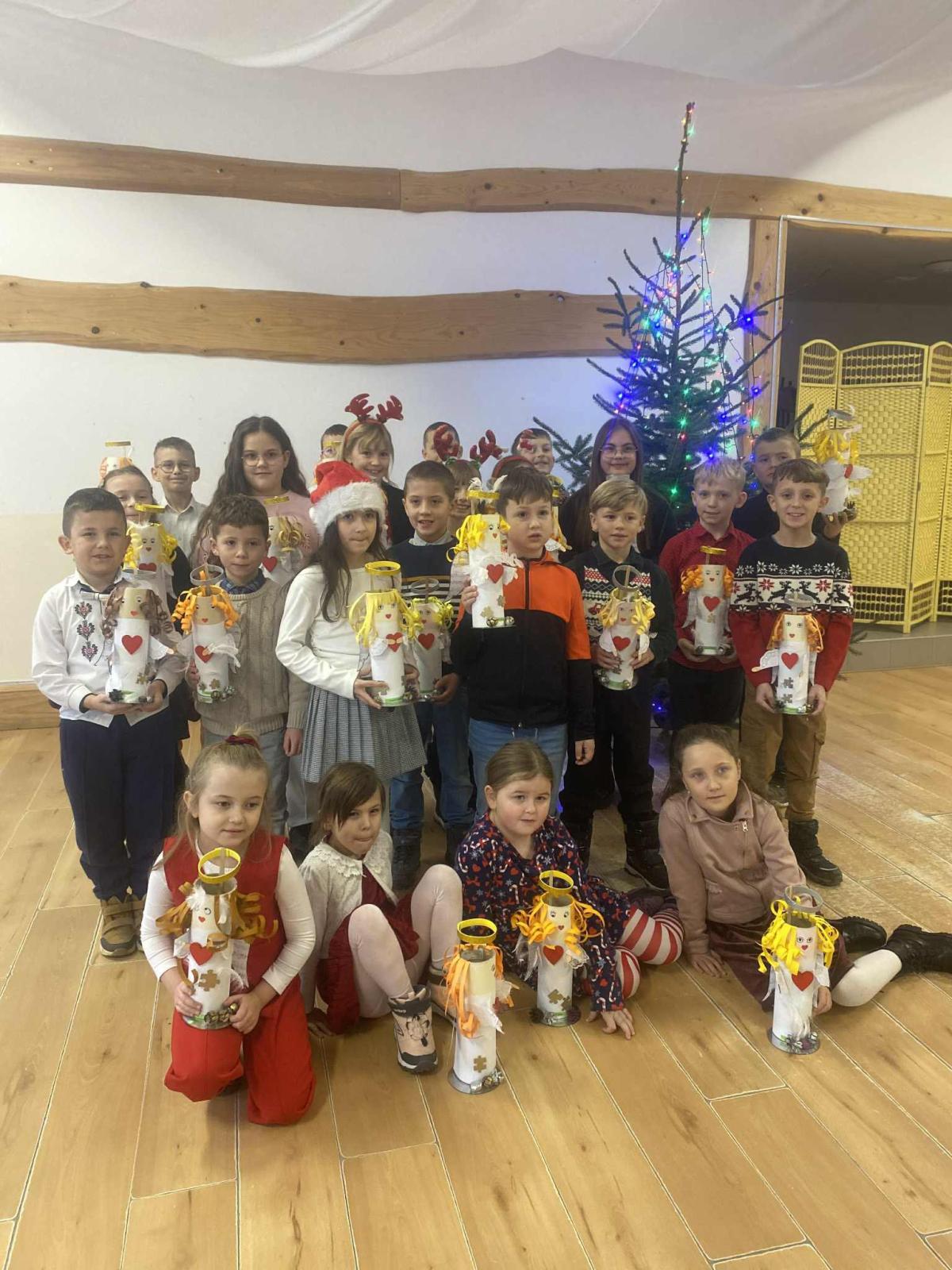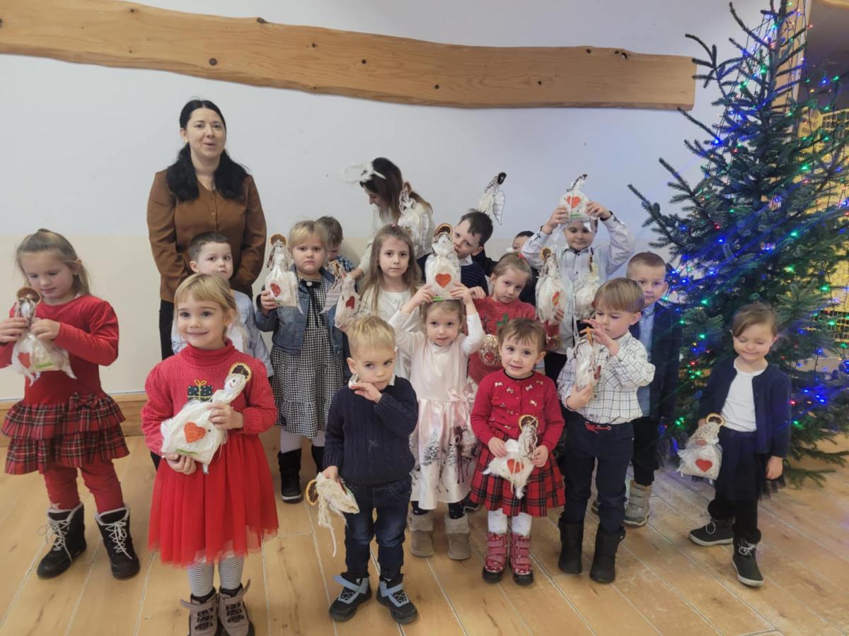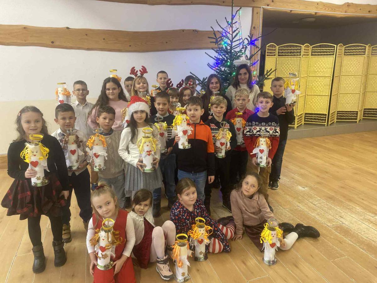Przedszkolaki oraz młodsi uczniowie odwiedzili także panią Anię podczas świątecznych warsztatów, gdzie powstały piękne anioły 👼✨. Najmłodsi przygotowali również karteczki ze świątecznymi życzeniami dla zaprzyjaźnionego przedszkola 💌.