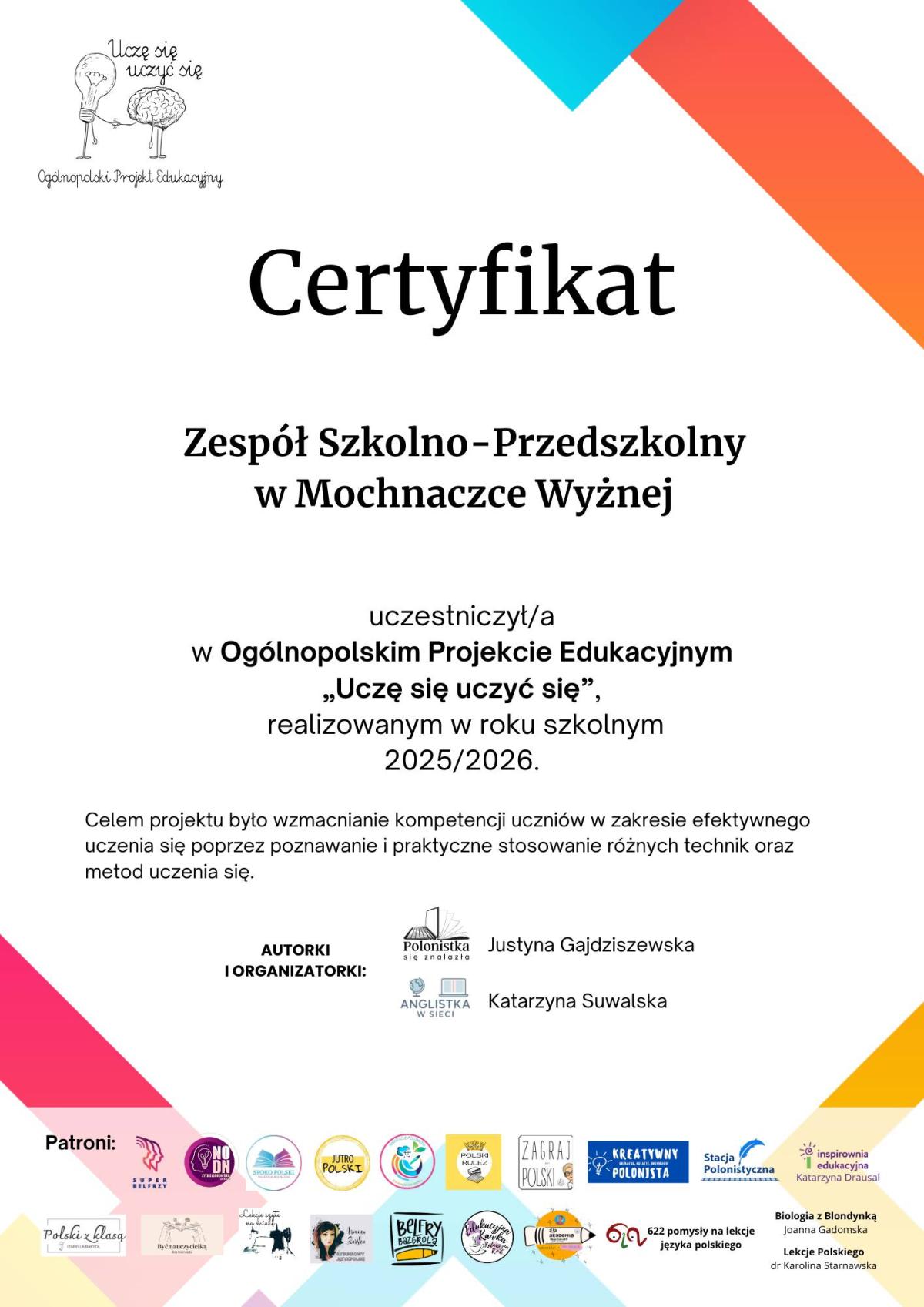 Udział w projekcie "Uczę się uczyć się"